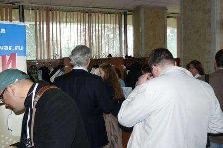 По счастливой случайности нашим коллегам удалось войти в главный корпус до основного потока и в гардеробе их ждал очередной «сюрприз»: одна бабушка на 4000 участников РИФ 2010!
