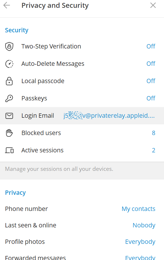 Path: Настройки → Конфиденциальность → Двухэтапная аутентификация