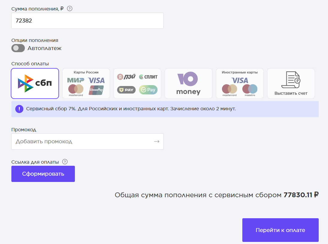 Теперь, при пополнении баланса, пользователи могут