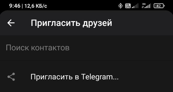 Если человека в Telegram не нашлось, вы можете отправить ему приглашение из этого же меню. Для этого воспользуйтесь кнопкой «Пригласить друзей».