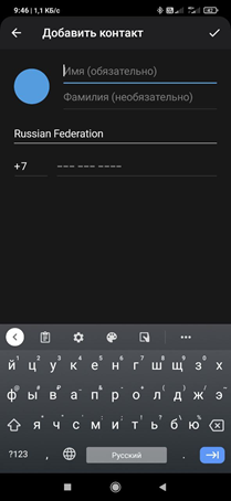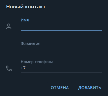 В правой нижней части экрана появится голубая кнопка «Добавить контакт». Нажмите на нее и введите в открывшемся окне номер телефона нужного человека. Укажите имя, под которым он будет отображаться в контактах в мессенджере. Telegram автоматически добавит пользователя.