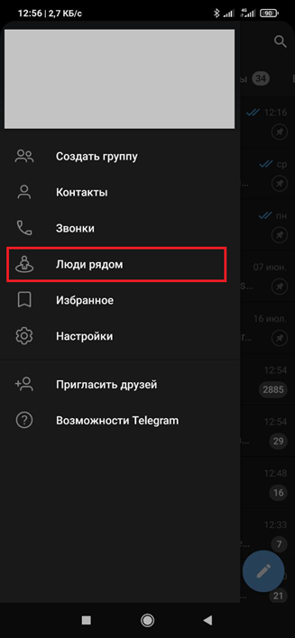 В версии для Android такая функция находится в основном меню – вариант «Люди рядом». Приложение сразу отобразит список пользователей поблизости.