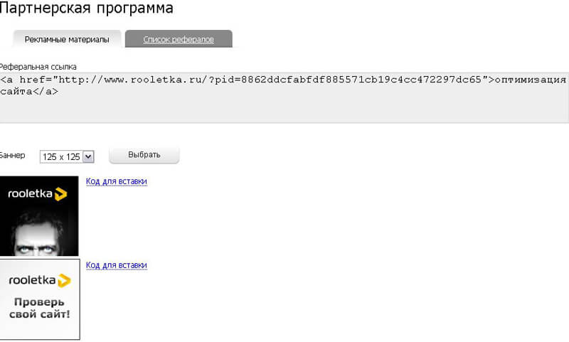 Кстати, став партнером сервиса Rooletka, вы автоматически становитесь партнером и сервиса Rookee. Вам присваивается единый идентификационный номер партнера, действительный для обеих систем. Равно как и участники партнерской программы от Rookee уже по умолчанию являются партнерами сервиса Rooletka.