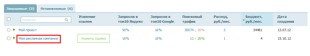 На вкладке «Запросы» напротив запроса, для которого хотите купить крауд-ссылки, нажмите на значение в столбце «Бюджет».