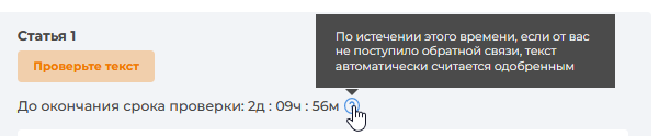 Срок модерации текста – 2,5 дня. Если вы не отреагируете за это время, текст будет считаться одобренным автоматически.