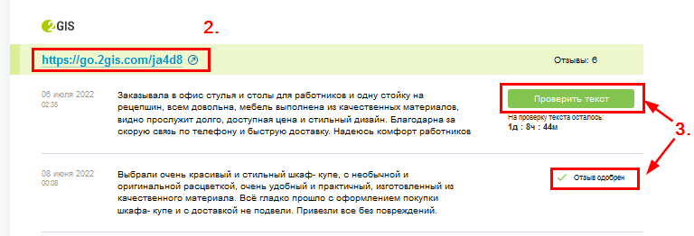 2. Название площадки, а также можно перейти непосредственно к размещённому отзыву.