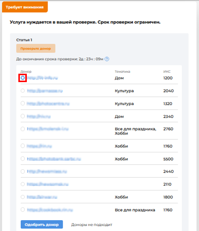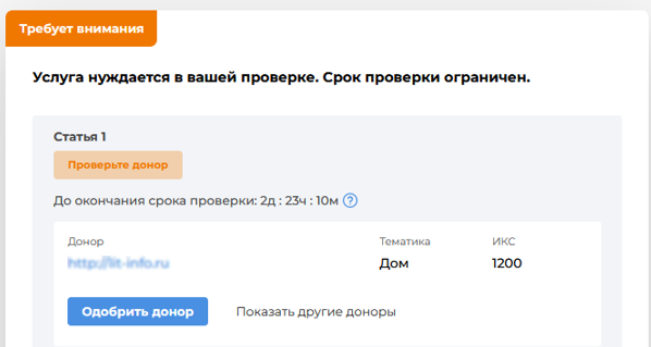 Вам снова будет предложена площадка для размещения вашей статейной ссылки с возможностью просмотра других доноров, пока вы не выберете тот, который соответствует вашим требованиям.