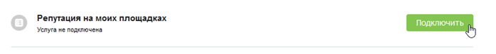 Нажмите на кнопку «Подключить» напротив той площадки, что вас интересует. Например, «Репутация на моих площадках».