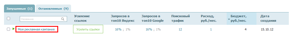 Хотите купить ещё ссылок? Увеличьте бюджет! Сделать это можно в разделе «Рекламные кампании».