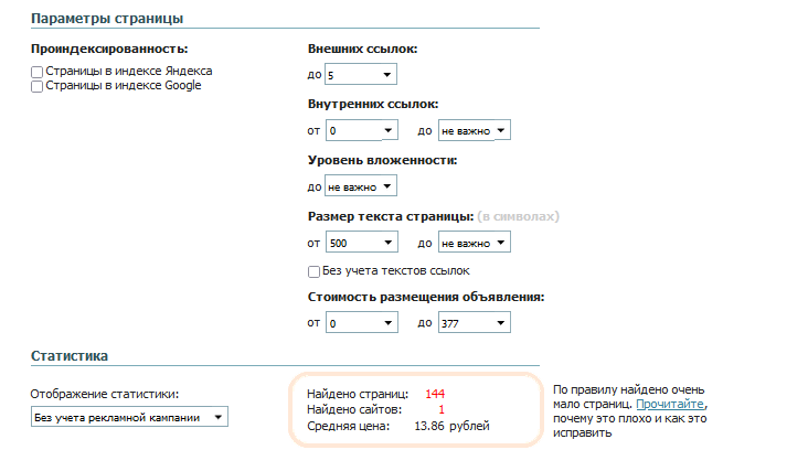 Здесь вы можете установить менее жёсткие параметры закупки ссылок.