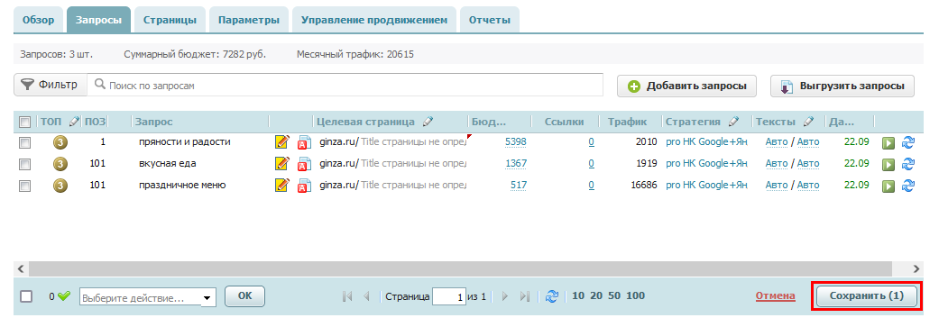 Не забудьте нажать кнопку «Применить» в окне и «Сохранить» в нижней части таблицы запросов.