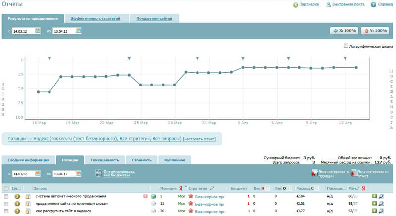 На следующем скриншоте из отчетов сервиса Rookee вы сами сможете увидеть, как росли позиции.